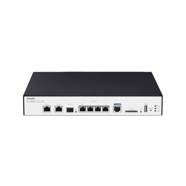 The Ruijie RG-RSR10-X-07L is a high-performance enterprise-grade router designed for businesses requiring fast, secure, and scalable networking. Powered by a multi-core CPU, it delivers high-speed data forwarding, ensuring smooth operations for bandwidth-intensive applications like VoIP, video conferencing, and cloud services.